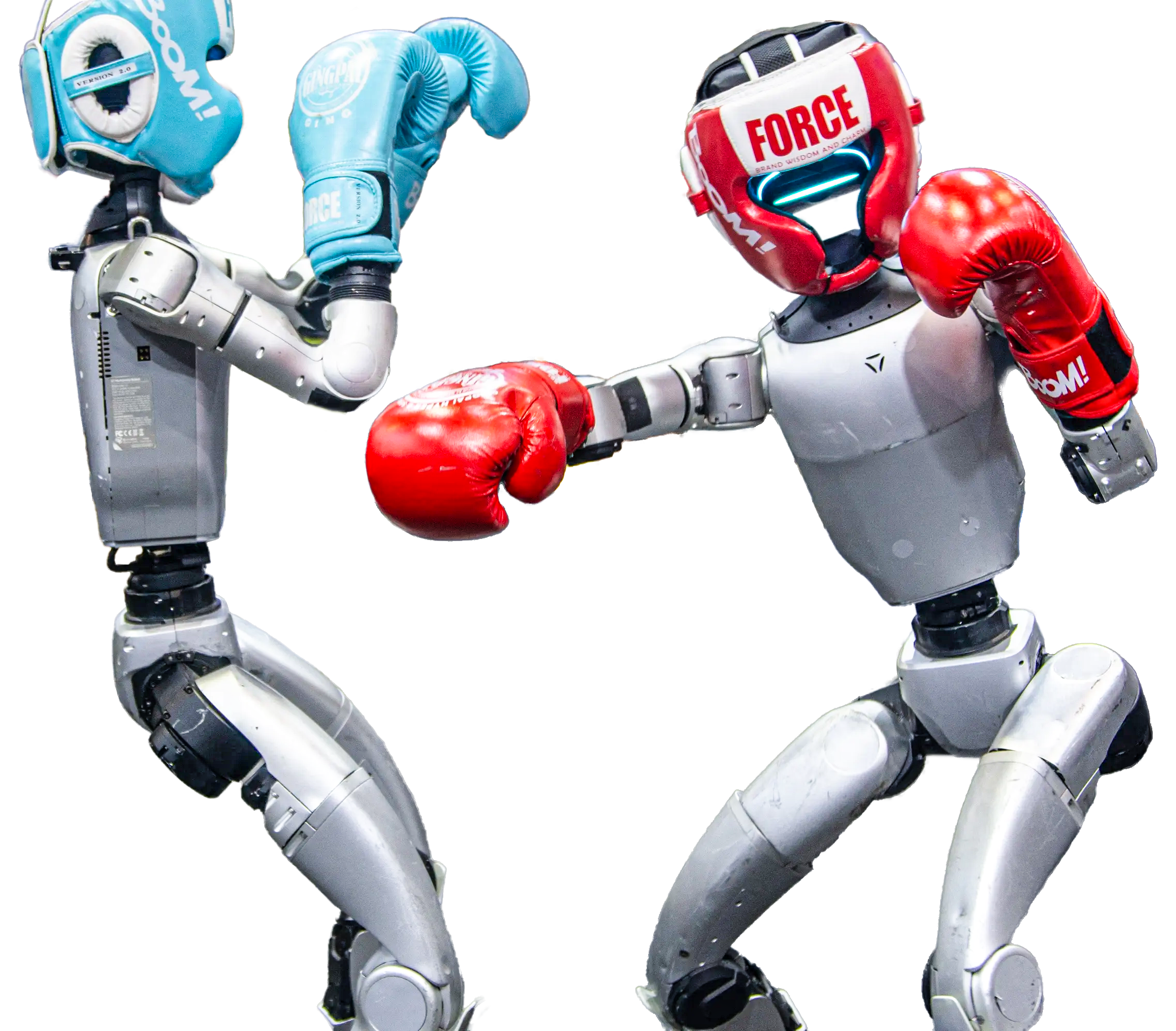 Human pilots control humanoid robots in live 1v1 matches — combining robotics engineering, competitive sport, and immersive digital experience.